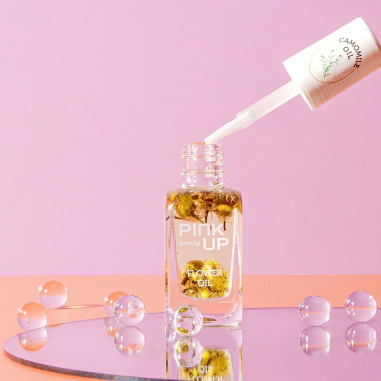 Масло для ногтей и кутикулы PINK UP BEAUTY Camomile Oil с эфирным маслом и соцветиями ромашки. Ромашка содержит органические кислоты, витамины групп К и С, флавоноиды и микроэлементы. Растение обладает удивительными лечебными свойствами. В качестве косметического ингредиента ромашка особенно интересна своим противовоспалительным, ранозаживляющим и восстанавливающим действием. Масло для ухода за ногтями и кутикулой PINK UP доставит эстетическое наслаждение и сделает руки красивыми и ухоженными.