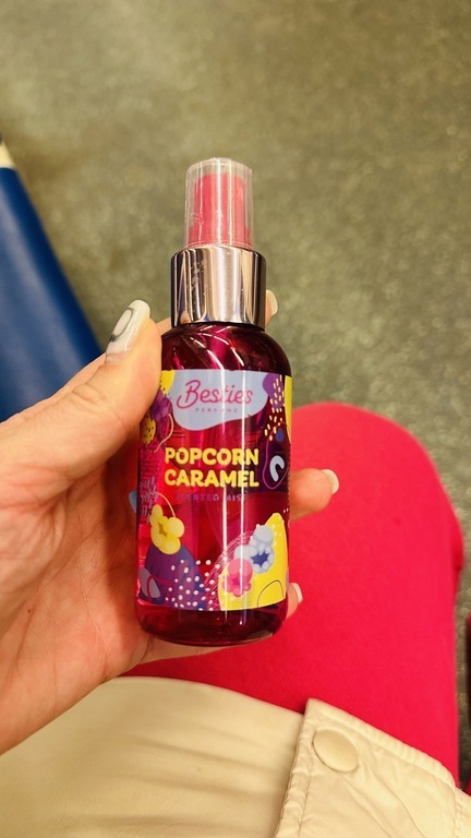 мист отличный, а главное стойкий!! действительно пахнет попкорном, люди говорят комплименты и спрашивают, чем пользуюсь. кто-то говорит, что пахнет булочкой с корицей