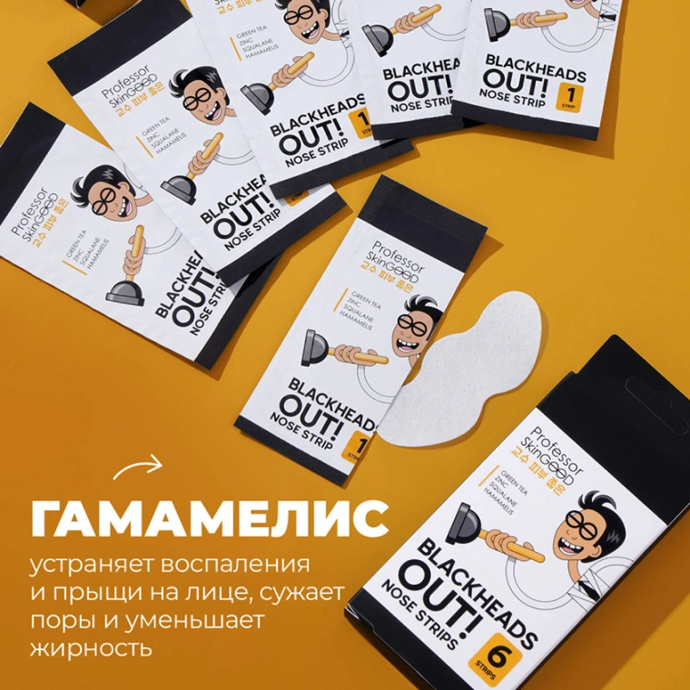 Полоски для носа удаляют "черные точки" и очищают поры, выводя загрязнения и излишки кожного себума. Экстракт гамамелиса способствует уменьшению жирного блеска. Устранение воспалений, уменьшение жирности кожи и нормализация работы сальных желез. Гамамелис - очень сильный вяжущий, тонизирующий и заживляющий компонент, который устраняет воспаления и прыщи на лице, сужает поры и уменьшает жирность, тонизируя и смягчая кожу, а также избавляя ее от шелушения. Цинк нормализует выработку кожного сала, помогает снять воспаление и не дает бактериям, участвующие в появлении угрей и прыщей, развиваться дальше. Увлажнение, очищение, здоровье и сияние кожи. Экстракт зеленого чая является прекрасным увлажнителем; он выравнивает тон лица, отлично борется с воспалениями и регулирует выработку кожного сала. За счёт такого эффекта кожа становится чистой, здоровой и сияющей. Увлажнение, защита кожи. Сквалан эффективно увлажняет кожу, восстанавливает липидный барьер; тем самым защищает кожу от негативного воздействия окружающей среды.