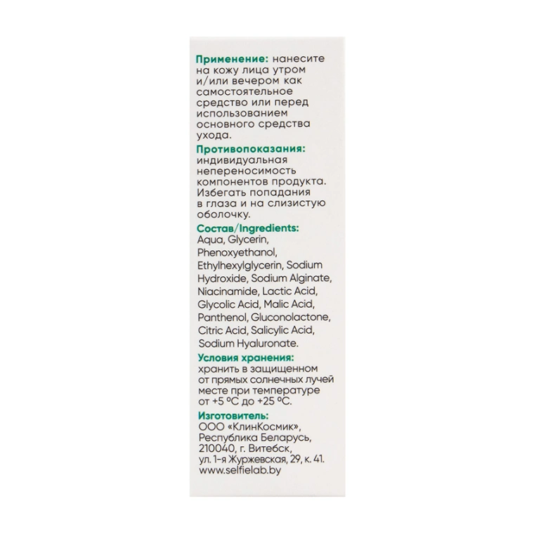 1.Фармацевтическое качество. Косметика Selfielab изготавливается в Беларуси на производстве, соответствующем требованиям европейского стандарта фармацевтического и косметического GMP.