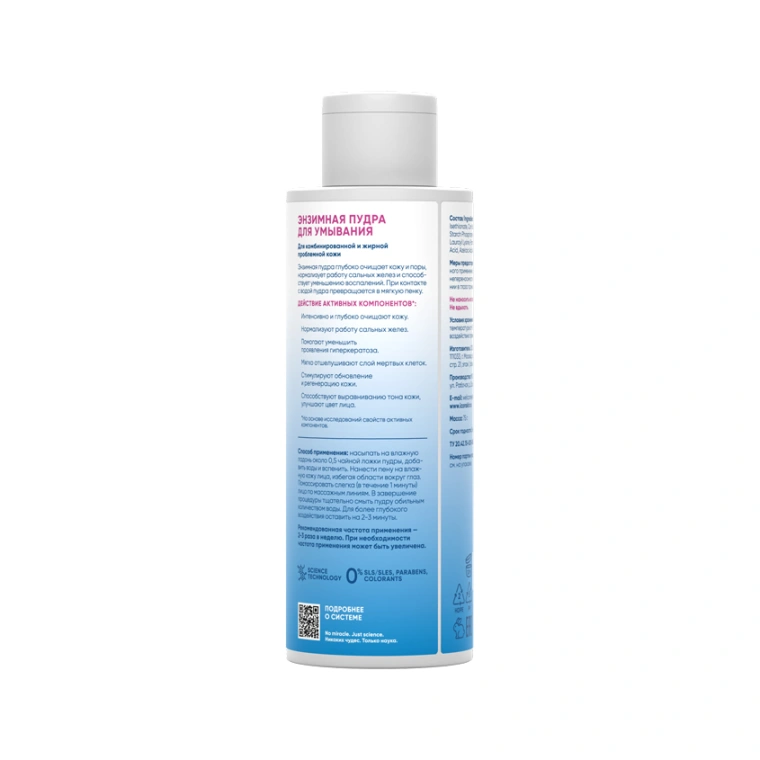 Энзимная пилинг-пудра для умывания начинает действовать при контакте с водой, превращаясь в мягкую пенку и активизируя очищающий энзимно-кислотный комплекс. Обеспечивает глубокое очищение, мгновенное сияние и непревзойденное ощущение гладкости кожи. Имеет специфический аромат, обусловленный присутствием натуральных экстрактов и энзимов папаин и бромелаин. ДЕЙСТВИЕ: 1) Интенсивно и глубоко очищает кожу. 2) Нормализует работу сальных желез. 3) Помогает уменьшить проявления гиперкератоза. 4) Мягко отшелушивает слой мертвых клеток. 5) Стимулирует обновление и регенерацию кожи. 6) Способствует выравниванию тона кожи, улучшает цвет лица. РЕЗУЛЬТАТ: безукоризненно чистая, гладкая и сияющая кожа. НЕ СОДЕРЖИТ: силиконов, парабенов, красителей. Рекомендуемая частота использования: 2-3 раза в неделю.