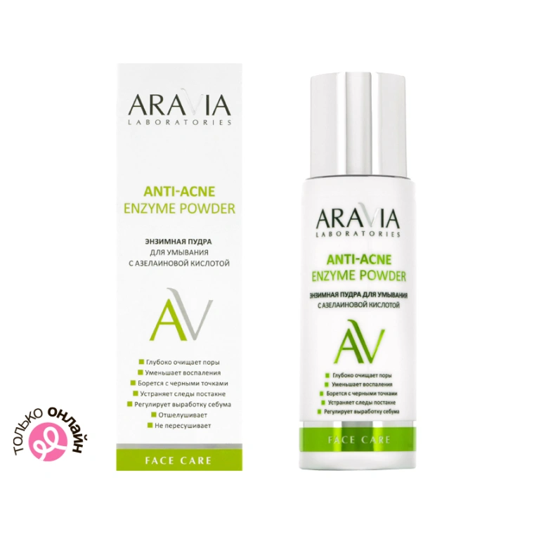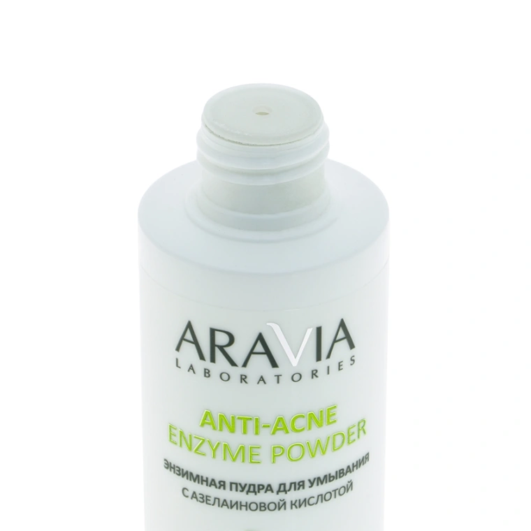 Энзимная пудра Aravia предназначена для ухода за жирной и проблемной кожей, склонной к появлению акне. При контакте с водой пудра превращается в мягкую пенку, бережно и эффективно очищает поры, не вызывая сухости. Азелаиновая кислота в составе оказывает антибактериальное, противовоспалительное и себорегулирующее действие. Борется с акне на всех этапах развития, убирает воспаления и черные точки, устраняет следы постакне. Энзимы папайи отшелушивают ороговевшие клетки эпидермиса, растворяют белковые загрязнения, устраняют шелушение и уменьшают комедоны. Голубая глина эффективно борется с акне, высветляет пигментные пятна, выравнивает тон кожи и убирает излишки себума. Экстракт овса успокаивает и смягчает кожу. Пудра усиливает действие дальнейшего ухода, выравнивает микрорельеф, оставляет ощущение гладкой и бархатистой кожи.