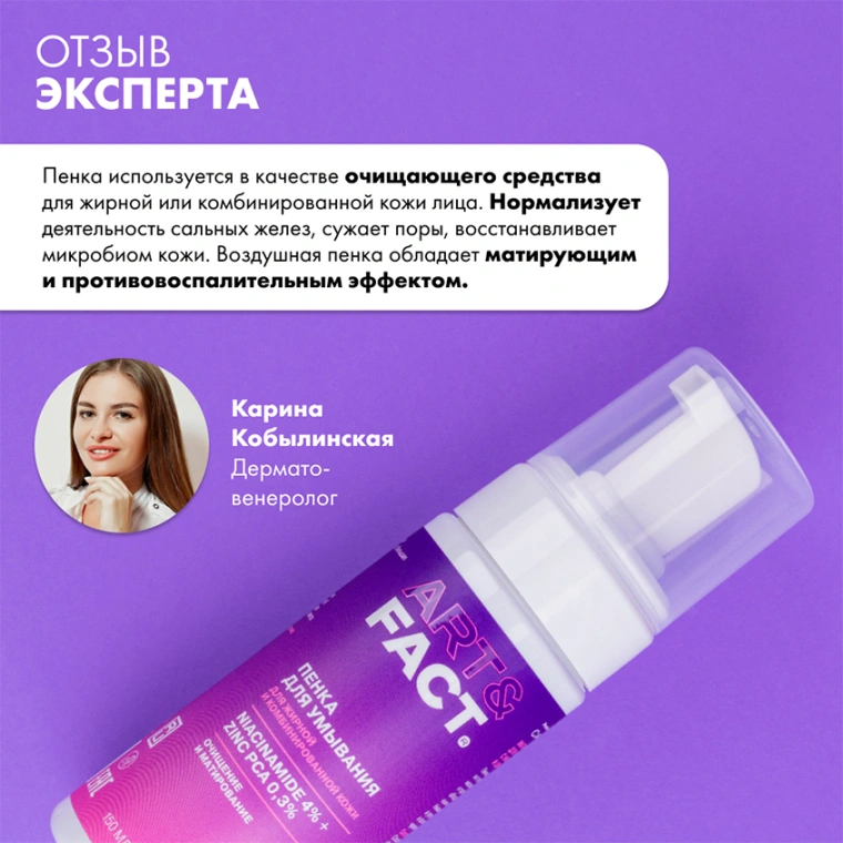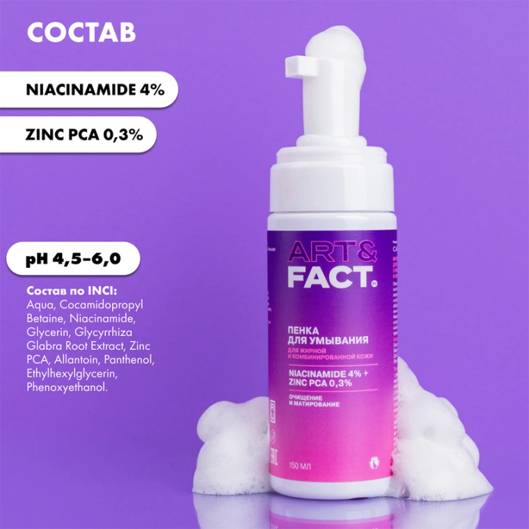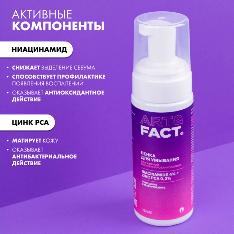 Пенка для умывания `ART & FACT` с ниацинамидом и цинком (матирующая) 150 мл
