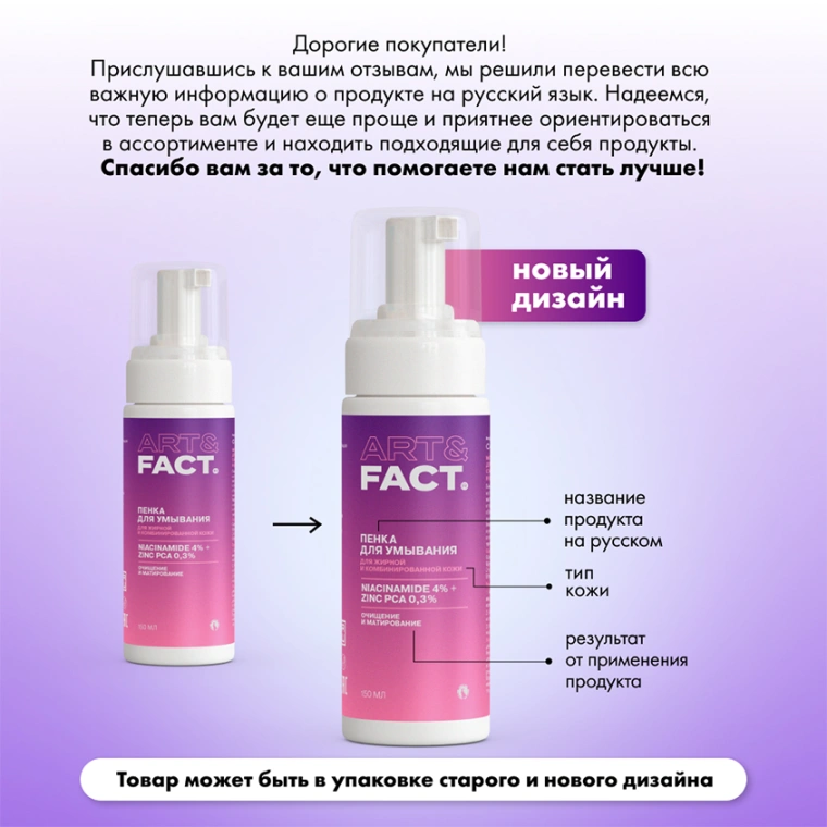 Российский бренд Art&Fact появился в марте 2020 года. Главный принцип заключается в использовании исключительно рабочих компонентов в формулах без лишней «мишуры»: отдушек, красителей и маркетинговых компонентов.