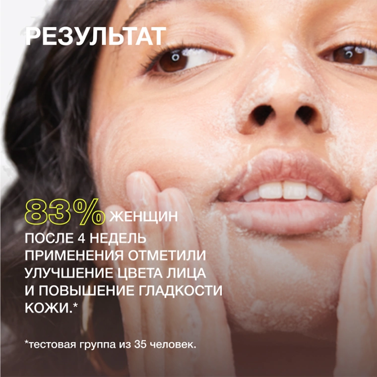 Дерматологически доказано, что гель не сушит кожу и обеспечивает эксфолиацию (удаление отмерших клеток). Он также помогает очистить поры и улучшить текстуру кожи, что приводит к уменьшению морщин, пигментных пятен и других несовершенств.