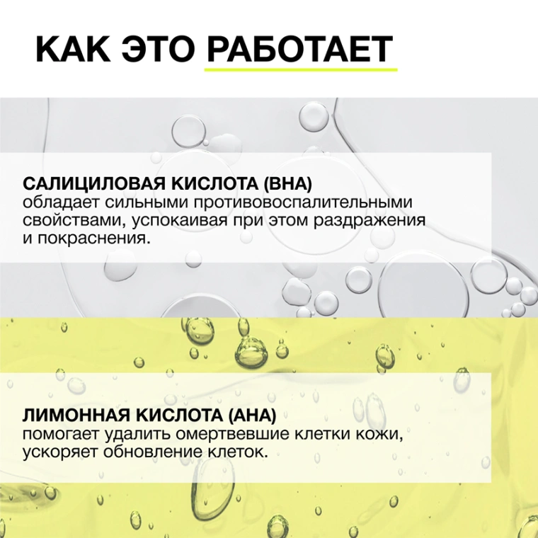 Лимонная кислота (АНА): помогает удалить омертвлявшие клетки кожи, ускоряет обновление клеток