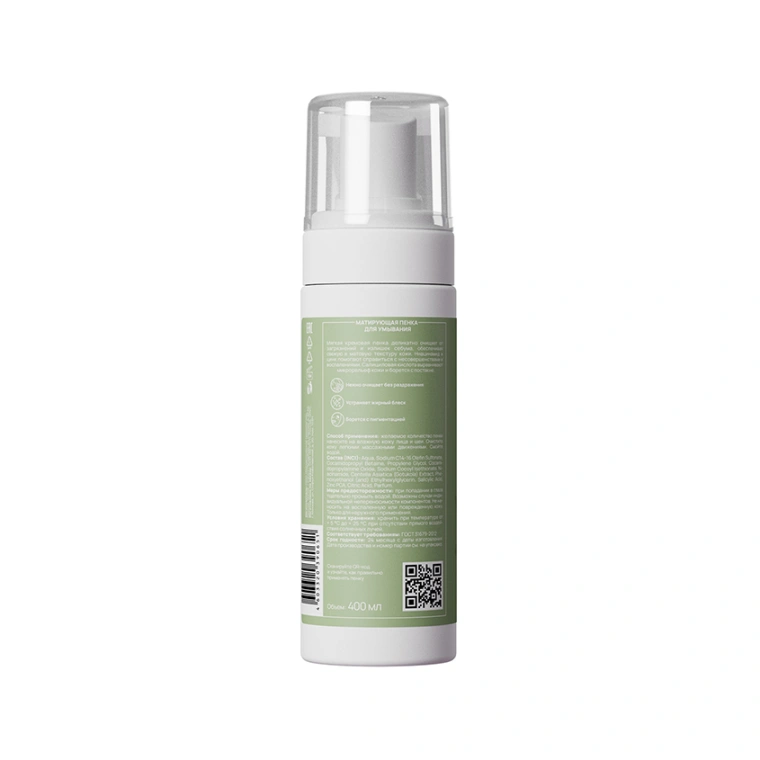 Мягкая кремовая пенка деликатно очищает от загрязнений и излишек себума, обеспечивая свежую и матовую текстуру кожи. Ниацинамид и цинк помогают справиться с несовершенствами и воспалениями. Салициловая кислота выравнивают микрорельеф кожи и борется с постакне.