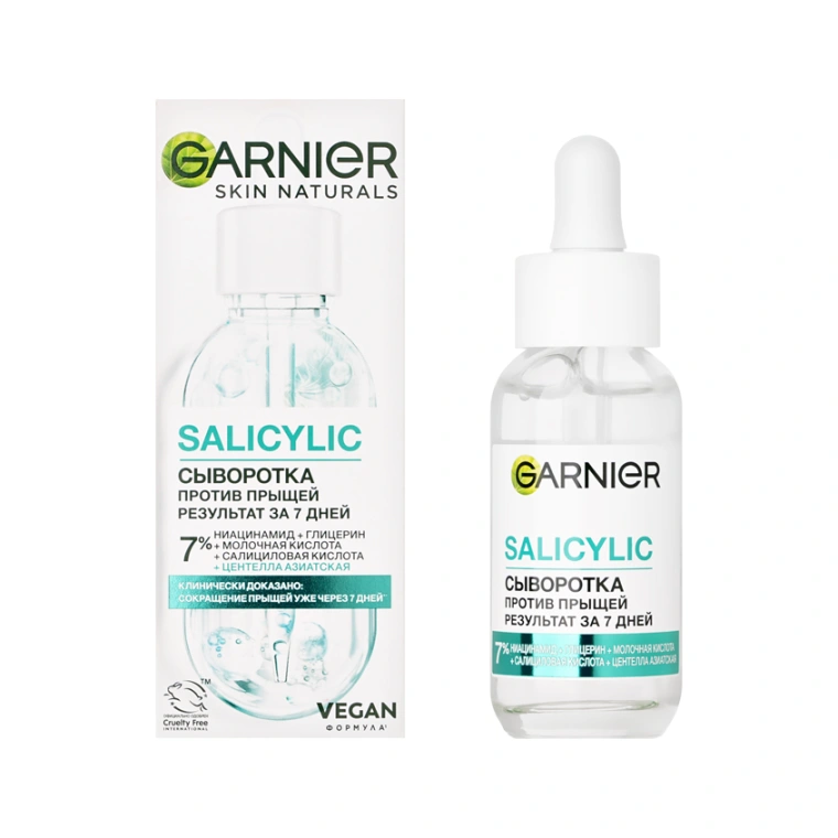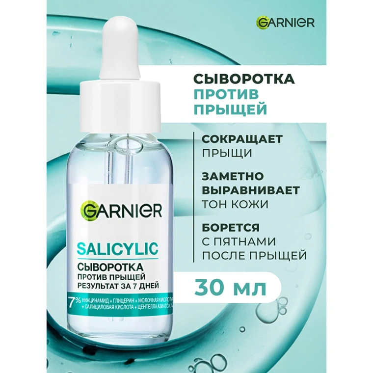 Сыворотка для лица против прыщей Garnier Салициловая, 30 мл — это целенаправленное средство для ухода за лицом, созданное для борьбы с несовершенствами и проблемной кожей. Сыворотка подходит даже для чувствительной кожи и может использоваться в утренней и вечерней рутине как регулярный уход за кожей.