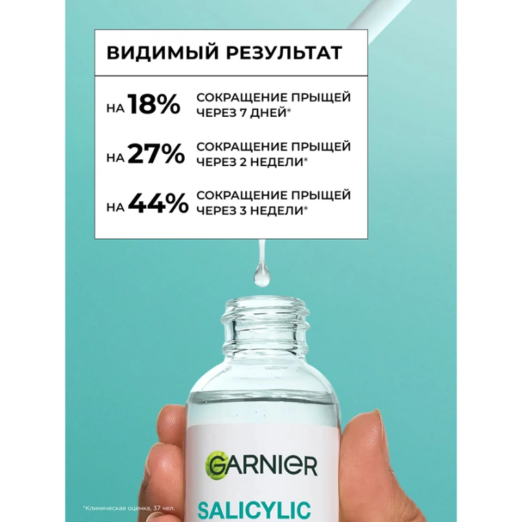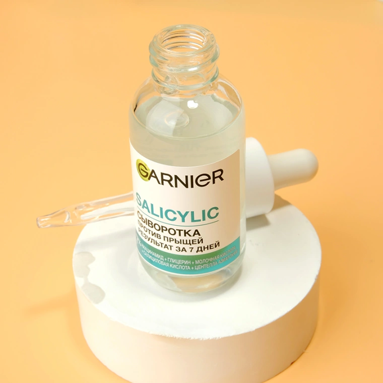 Сыворотка против прыщей на лице Garnier Салициловая — это ваш надежный помощник в уходе за кожей, который сокращает прыщи, борется с пятнами после прыщей/несовершенств и помогает коже выглядеть здоровой и ухоженной каждый день.