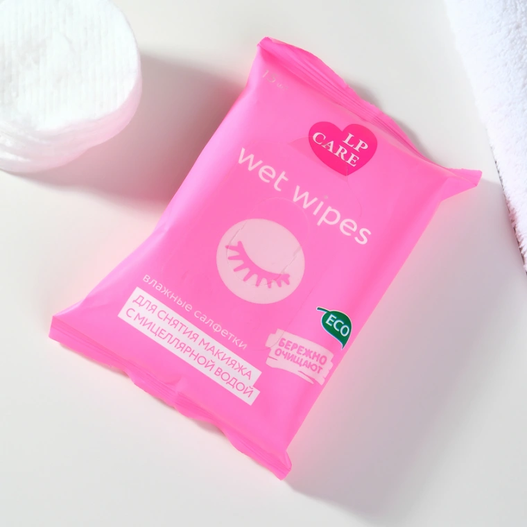 Влажные салфетки LP CARE с мицеллярной водой предназначены для снятия макияжа с нежной кожи лица. Бережно очищают и освежают кожу, придают приятный запах. Не содержат спирта.
