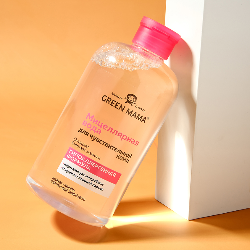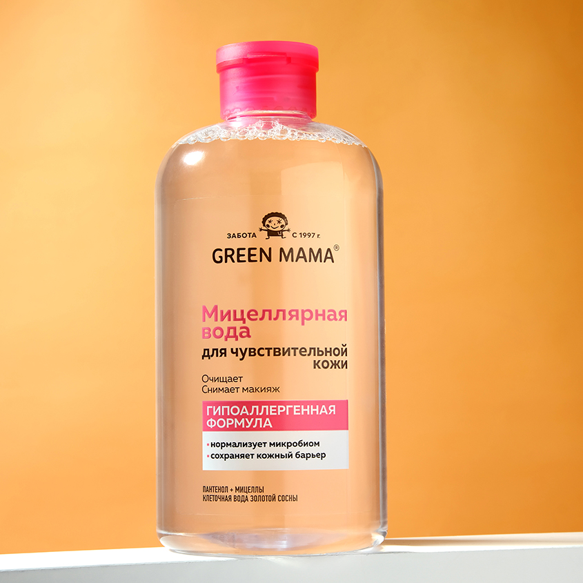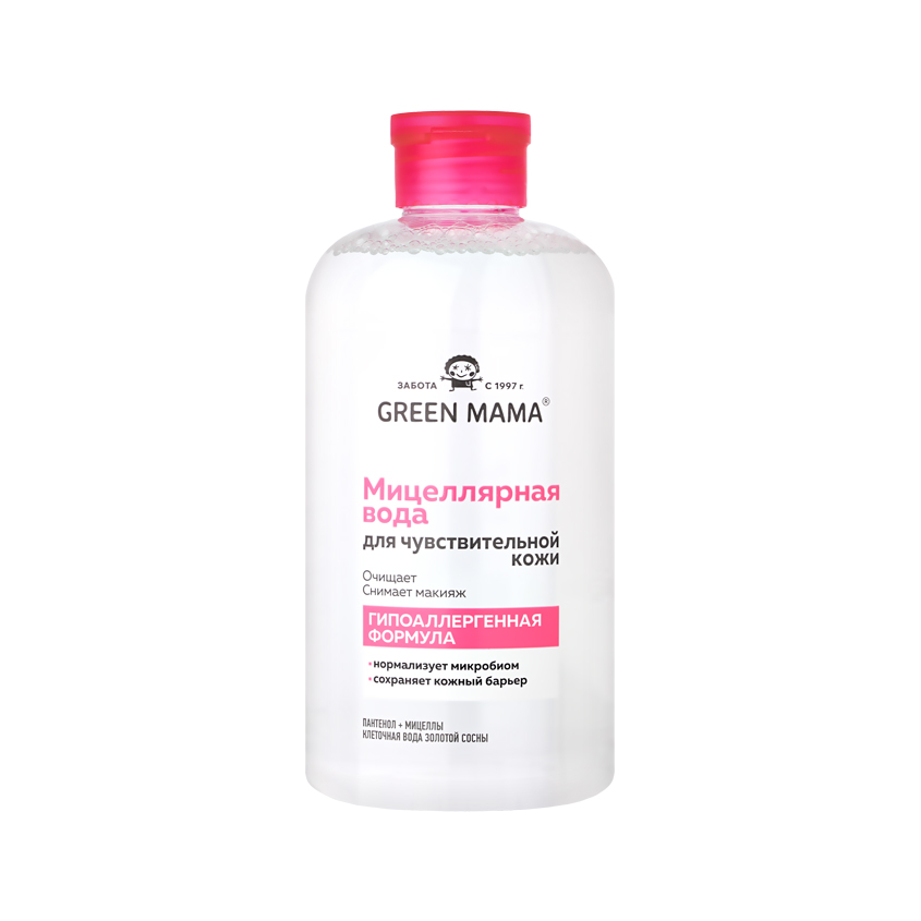Мицеллярная вода `GREEN MAMA` для чувствительной кожи с пантенолом и клеточной водой золотой сосны 500 мл