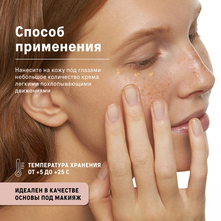 Нанесите на кожу под глазами небольшое количество крема лёгкими похлопывающими движениями