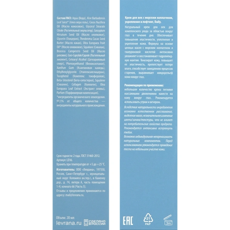 Леврана – производитель из Санкт-Петербурга. Это не только натуральные составы, но и действенные работающие формулы. Благодаря грамотному подбору ингредиентов и их сочетанию продукты бренда объединяют в себе эффективность и доступность.