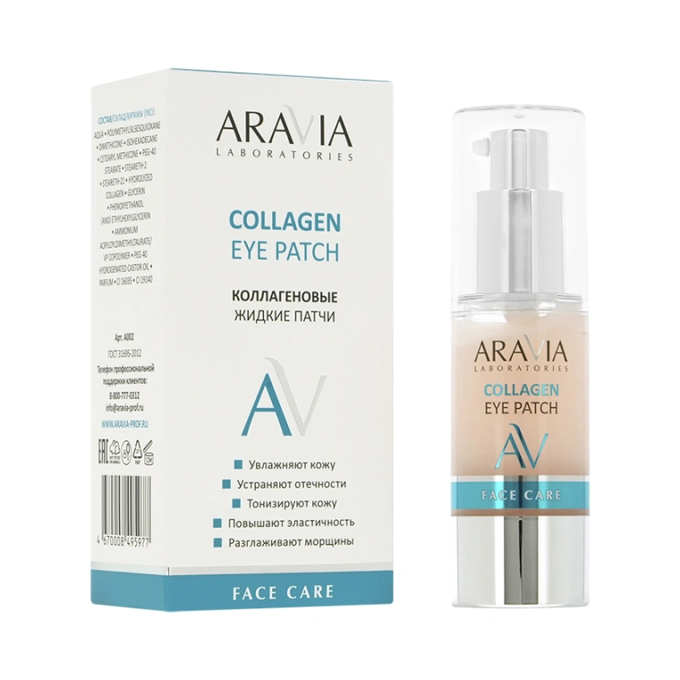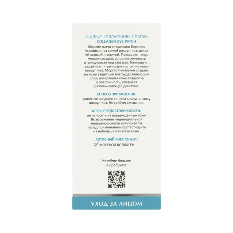 Жидкие патчи ежедневно бережно ухаживают за кожей вокруг глаз, делая её гладкой и упругой. Повышают тонус мелких сосудов, устраняя отечность и припухлости под глазами. Тонизируют, увлажняют и улучшают состояние кожи вокруг глаз. Морской коллаген создает на коже защитный влагоудерживающий слой, возвращает коже гладкость и эластичность, оказывая разглаживающее действие.