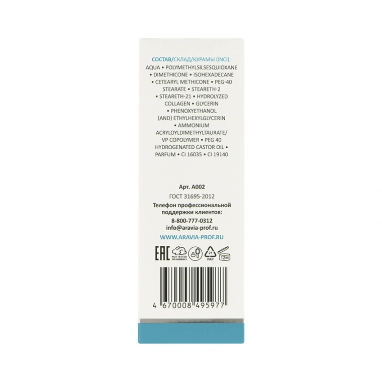 Аqua, Polymethylsilsesquioxane, Dimethicone, Isohexadecane, Cetearyl Methicone, PEG-40 Stearate, Steareth-2, Steareth-21, Hydrolyzed Collagen, Glycerin, Phenoxyethanol (and) Ethylhexylglycerin, Ammonium Acryloyldimethyltaurate/VP Copolymer, PEG 40 Hydrogenated Castor Oil, Parfum, CI 16035, CI 19140.