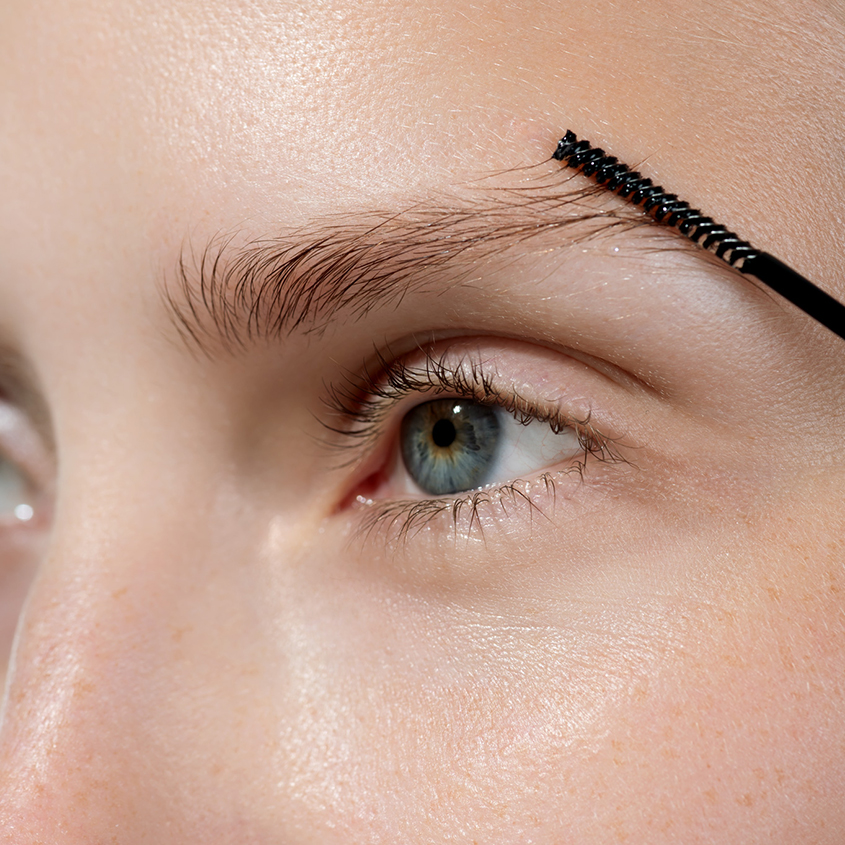 При помощи щеточки нанесите гель на брови по направлению роста волосков и придайте им желаемую