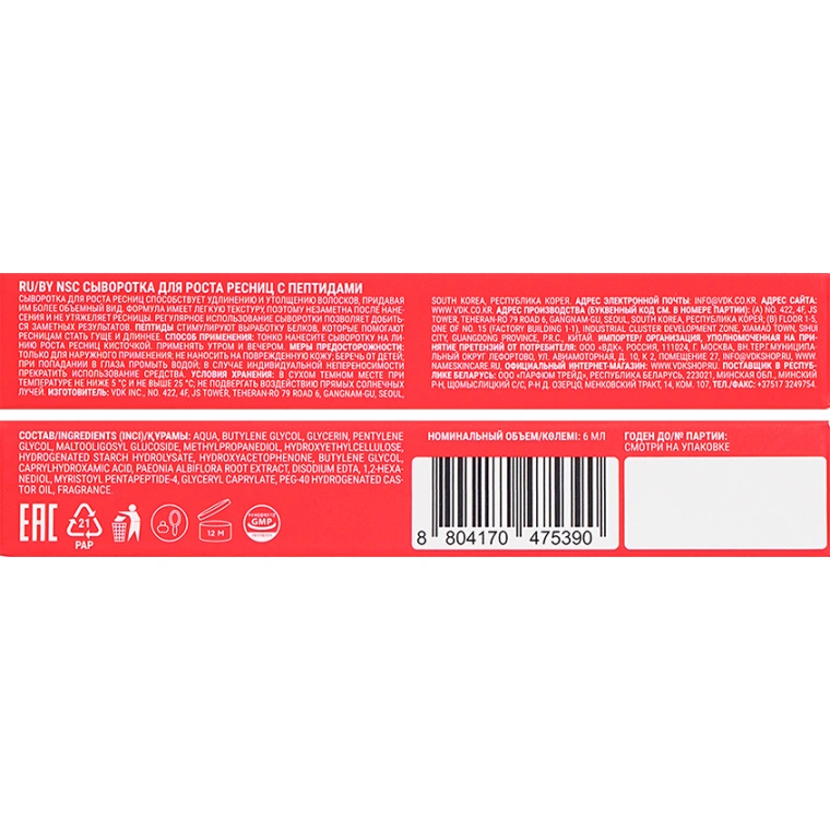тонко нанесите сыворотку на линию роста ресниц кисточкой. Применять утром и вечером