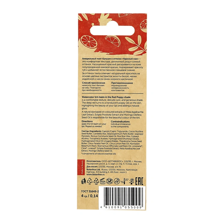 Сбалансированный состав масел и восков придает тинтам комфортную текстуру, они легко наносятся и не требуют частого обновления.