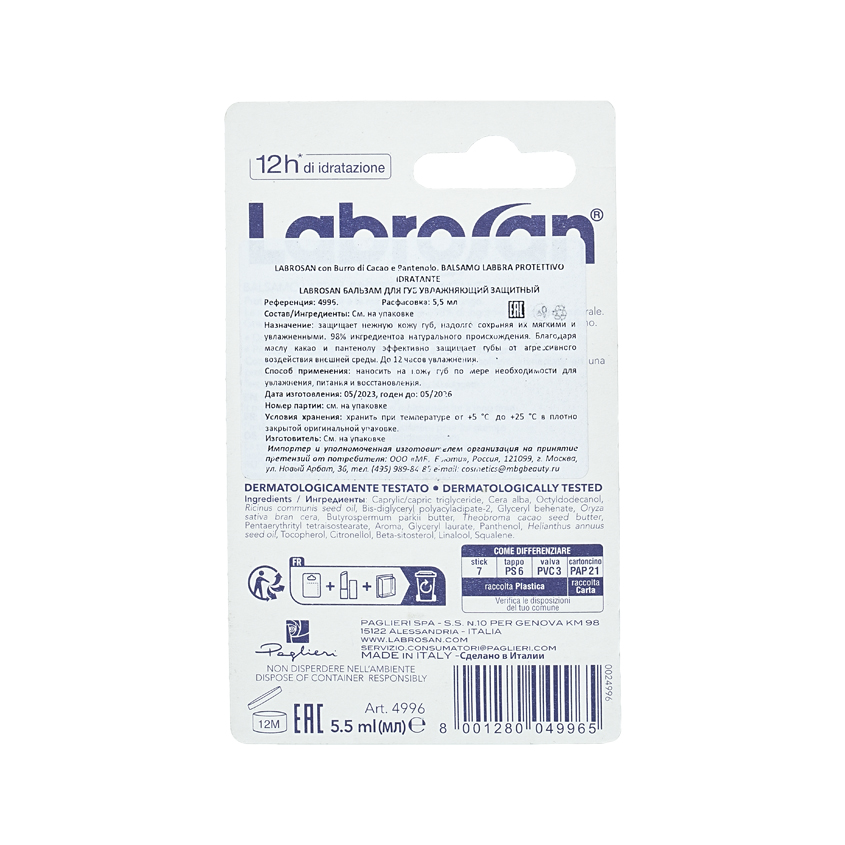 Защищает нежную кожу губ, надолго сохраняя их мягкими и увлажненными. 98% ингредиентов натурального происхождения. Благодаря маслу какао и пантенолу эффективно защищает губы от агрессивного воздействия внешней среды. До 12 часов увлажнения.