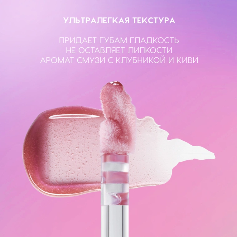 Блеск с полупрозрачной текстурой придает губам гладкость и оставляет глянцевый финиш, подчеркивая их естественную красоту. Еще одна особенность продукта — объемный аппликатор в форме варежки. Он делает нанесение максимально удобным и легким, равномерно распределяя блеск по губам и создавая идеальное покрытие. Насладись каждым прикосновением аппликатора, которое придаст губам непередаваемую мягкость и объем.