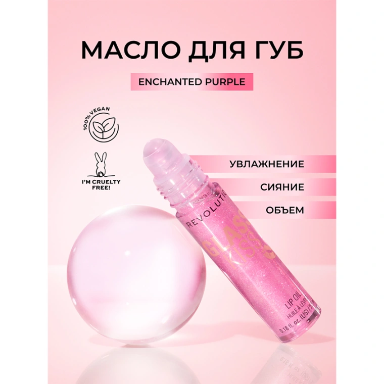 Масло для губ `REVOLUTION` GLASS KISS с шиммером тон 01 Enchanted purple