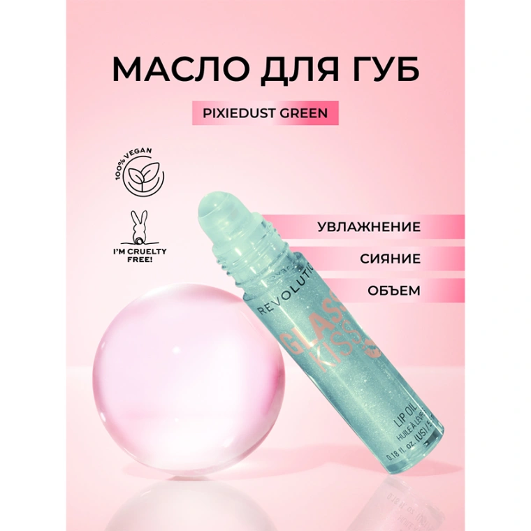 Масло для губ `REVOLUTION` GLASS KISS с шиммером тон 04 Pixiedust green
