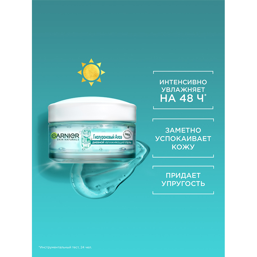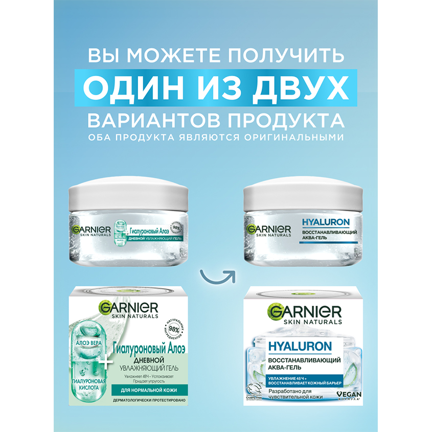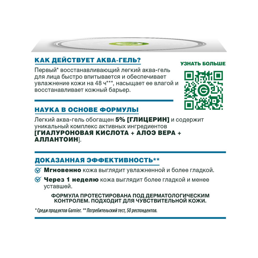 Восстанавливающий аква-гель для лица Garnier HIALURON — это интенсивное увлажняющее средство для чувствительной кожи, обеспечивающее ощущение свежести и длительное увлажнение до 48 часов*. Увлажняющий аква-гель для лица, обогащенный гиалуроновой кислотой, алоэ вера и глицерином, быстро впитывается, восстанавливая ее гидробаланс и укрепляя защитный барьер уже через 1 час после применения*. Этот многофункциональный уход для лица может использоваться как дневной уход, а также в качестве увлажняющей маски для моментального преображения.
