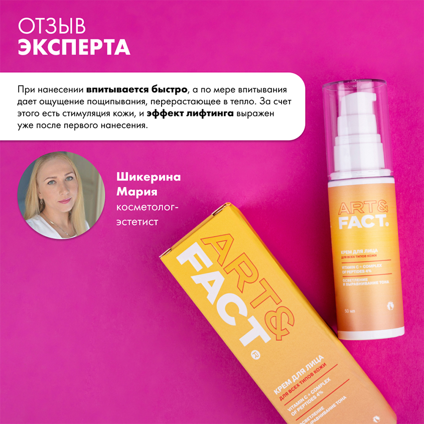 Российский бренд Art&Fact появился в марте 2020 года. Главный принцип заключается в использовании исключительно рабочих компонентов в формулах без лишней «мишуры»: отдушек, красителей и маркетинговых компонентов.