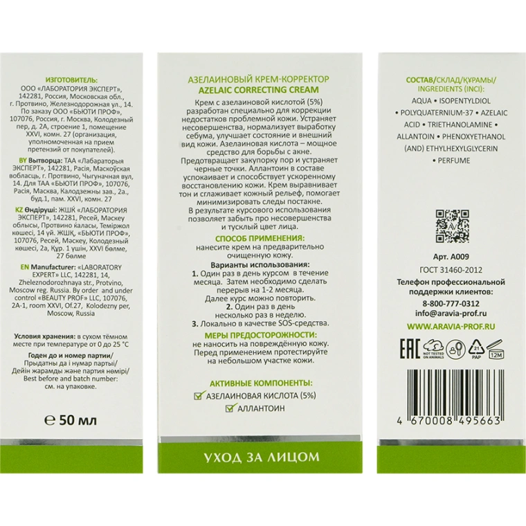 Крем с азелаиновой кислотой ARAVIA LABORATORIES создан, чтобы справляться неровным тоном, воспалениями, расширенными порами и другими кожными проблемами. Он помогает регулировать выработку себума, способствует уменьшению покраснений и предотвращает появление несовершенств.