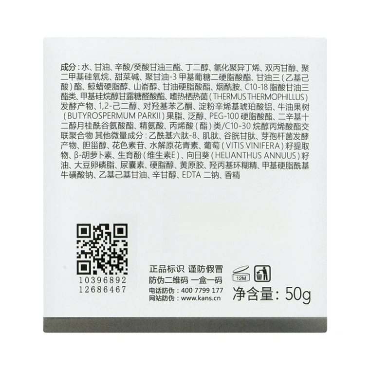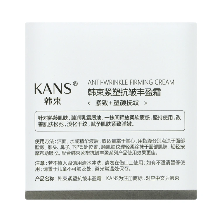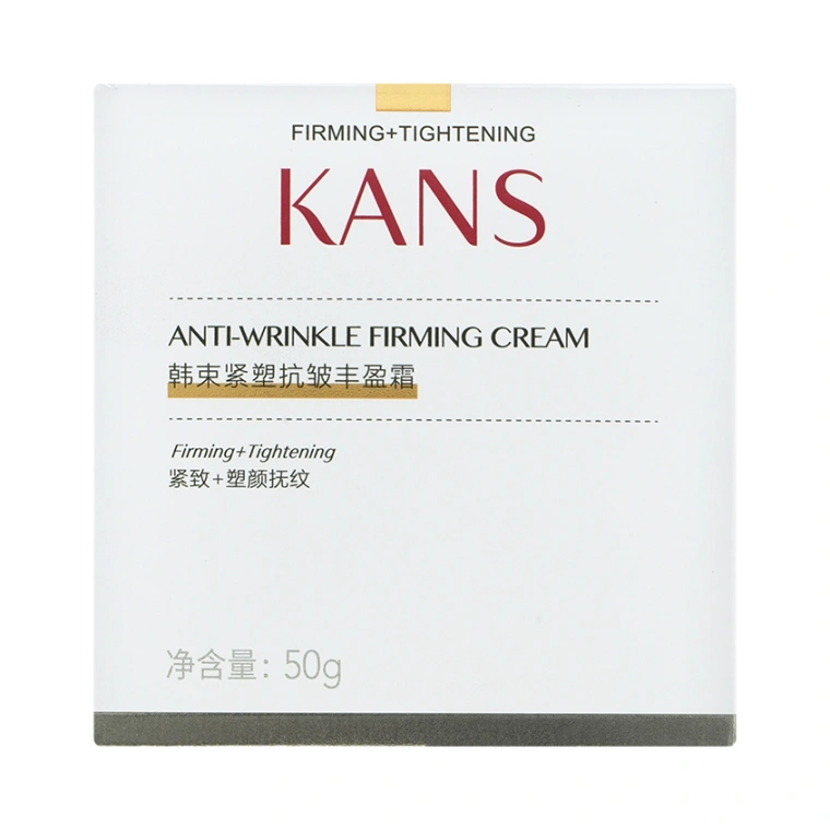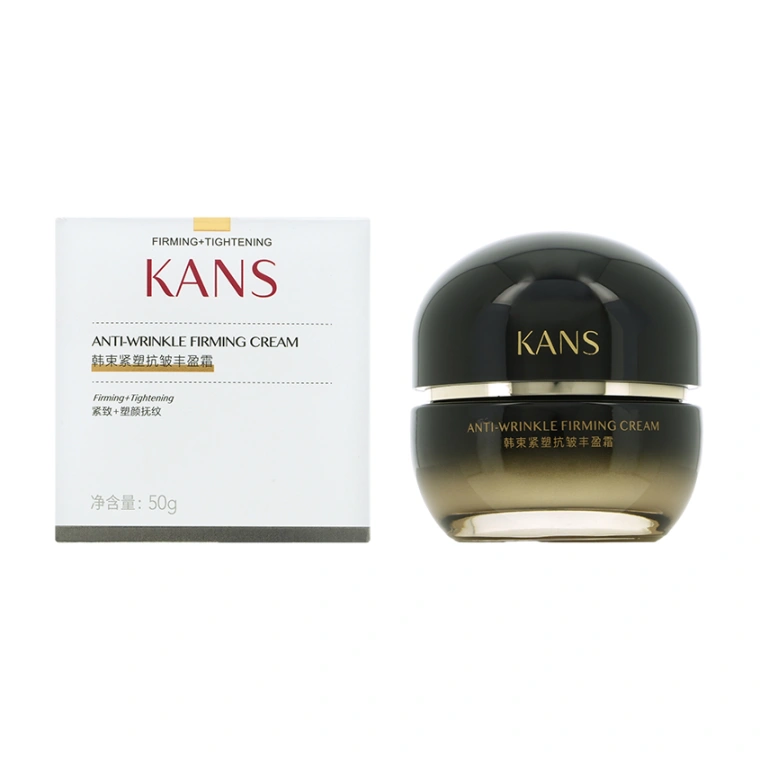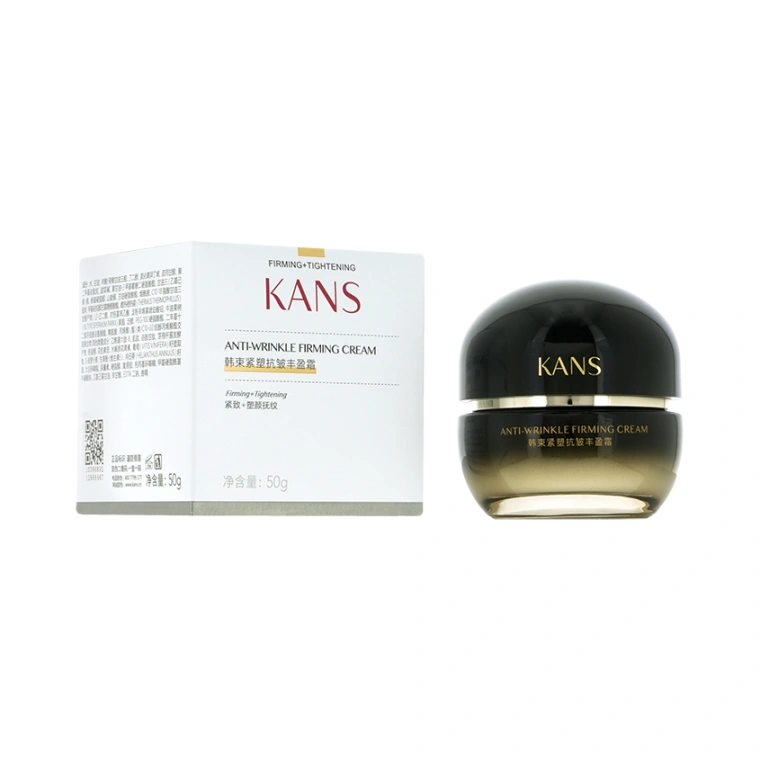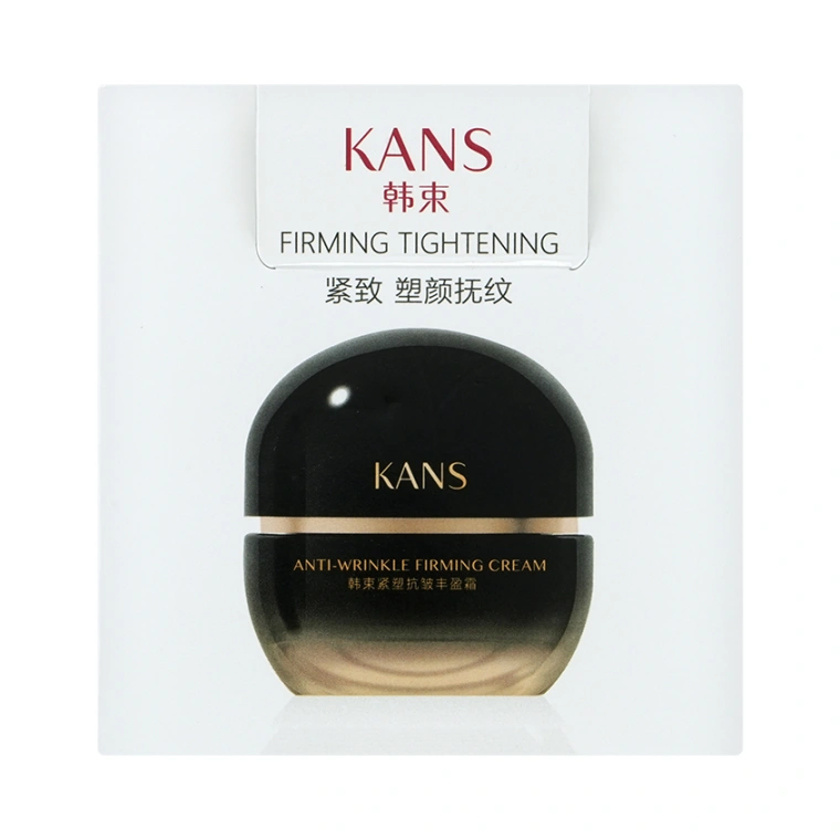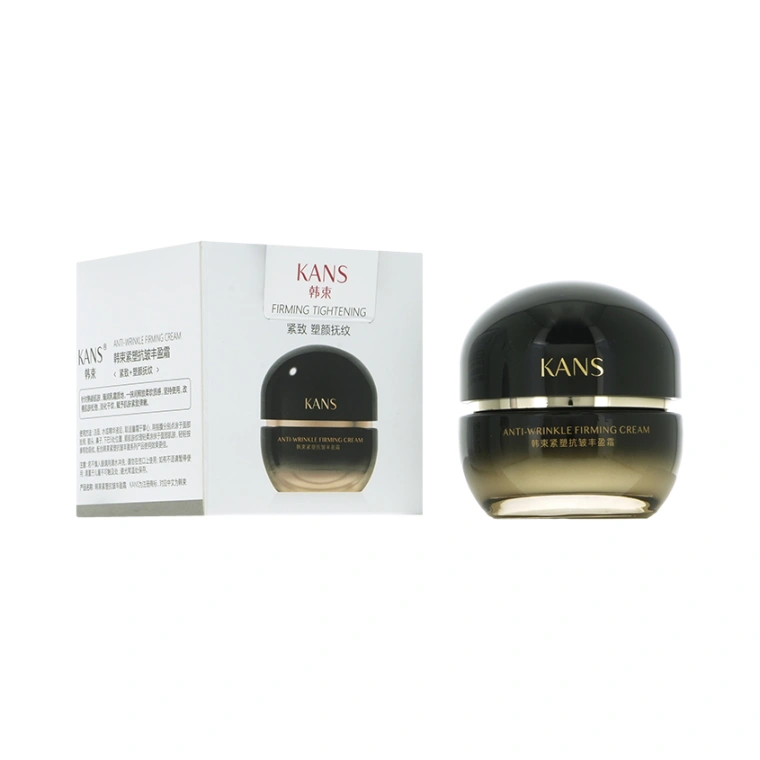 Линейка продуктов KANS Anti-wrinkle Firming в чёрно-золотых флаконах подходит для любого типа кожи с выраженными признаками возрастных изменений. Рекомендуем ориентироваться именно на состояние кожи, а не на конкретный возраст. Для кого-то эта линейка будет актуальной в 45 лет, а кому-то подойдёт в 50 или в 60 лет. Премиальная уходовая косметика КАНС не содержит в своем составе спирта, гормонов, консервантов, минеральных масел, восков и феноксиэтанола. Многократно протестирована, безопасна и имеет все необходимые международные сертификаты качества. Баночка из толстого чёрного пластика с градиентным переходом к золотому цвету и округлой крышкой содержит 50 г увлажняющего крема для лица Kans Anti-wrinkle Firming Cream, имеет дополнительную пластиковую защитную мембрану внутри и упакована в прочную картонную коробку с дополнительным слоем слюды. Крем для лица с ниацинамидом прекрасно сочетается с другими продуктами линейки KANS Anti-wrinkle Firming. Может использоваться в качестве дневного крема для лица и в качестве ночного. Для восстановления упругости Вашей кожи, её красоты и здоровья выбирайте продукты с научным подходом к сохранению молодости с ранних лет от компании CHICMAX.