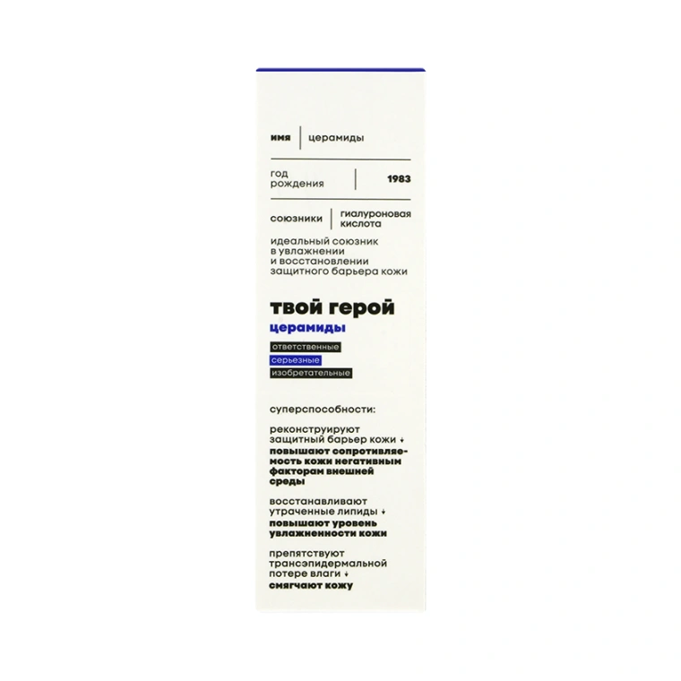 Церамиды способствуют восстановлению гидробаланса и защитного барьера кожи, повышают сопротивляемость эпидермиса негативным факторам.