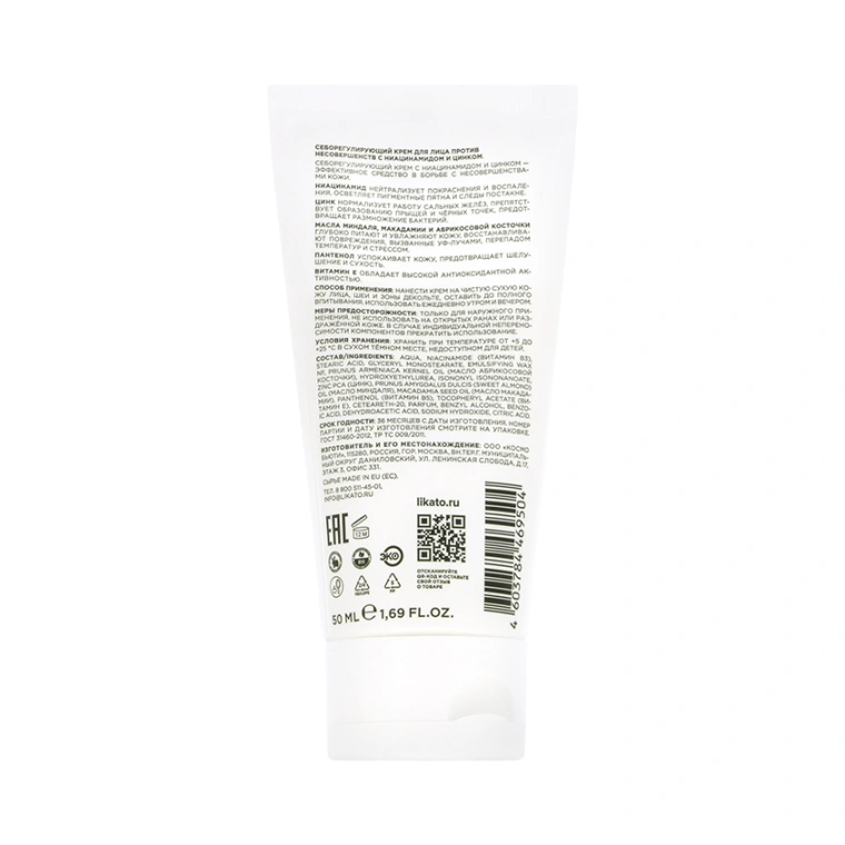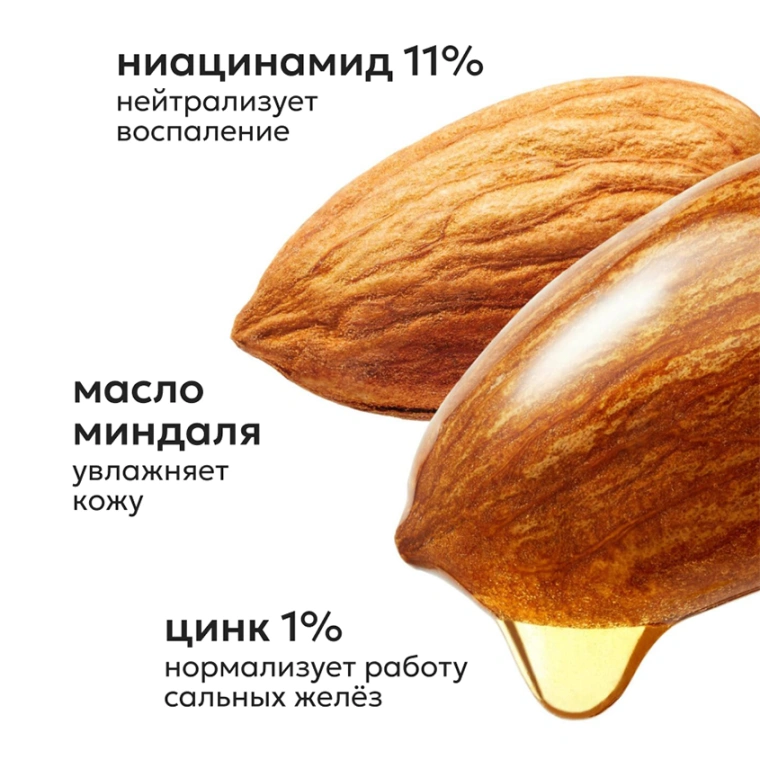 "СЕБОРЕГУЛИРУЮЩИЙ КРЕМ С НИАЦИНАМИДОМ И ЦИНКОМ — ЭФФЕКТИВНОЕ СРЕДСТВО В БОРЬБЕ С НЕСОВЕРШЕНСТВАМИ КОЖИ. НИАЦИНАМИД НЕЙТРАЛИЗУЕТ ПОКРАСНЕНИЯ И ВОСПАЛЕНИЯ, ОСВЕТЛЯЕТ ПИГМЕНТНЫЕ ПЯТНА И СЛЕДЫ ПОСТАКНЕ. ЦИНК НОРМАЛИЗУЕТ РАБОТУ САЛЬНЫХ ЖЕЛЁЗ, ПРЕПЯТСТВУЕТ ОБРАЗОВАНИЮ ПРЫЩЕЙ И ЧЁРНЫХ ТОЧЕК, ПРЕДОТВРАЩАЕТ РАЗМНОЖЕНИЕ БАКТЕРИЙ. МАСЛА МИНДАЛЯ, МАКАДАМИИ И АБРИКОСОВОЙ КОСТОЧКИ ГЛУБОКО ПИТАЮТ И УВЛАЖНЯЮТ КОЖУ, ВОССТАНАВЛИВАЮТ ПОВРЕЖДЕНИЯ, ВЫЗВАННЫЕ УФ-ЛУЧАМИ, ПЕРЕПАДОМ