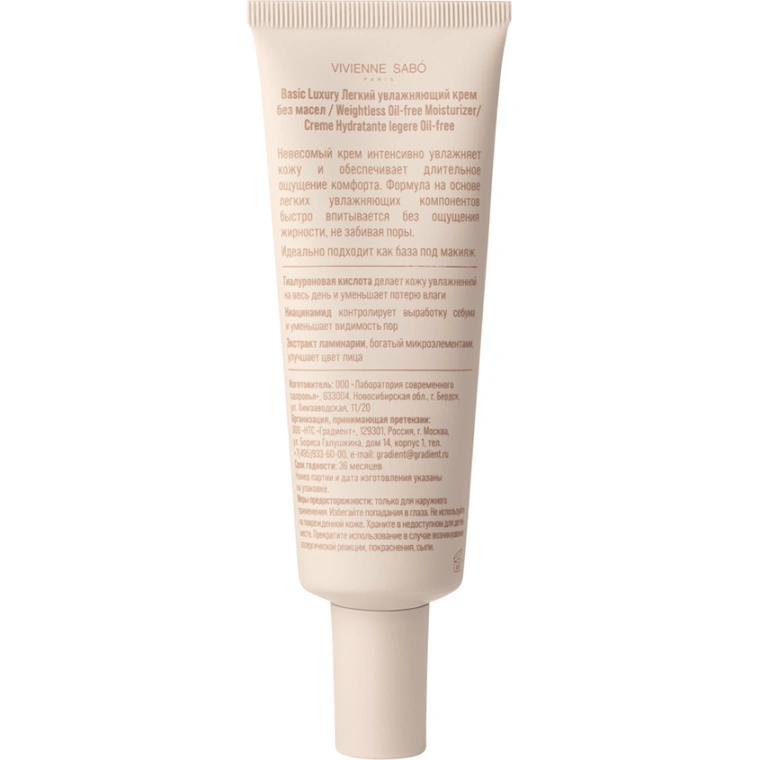 Лёгкий увлажняющий крем без масел WEIGHTLESS OIL-FREE MOISTURIZER от VIVIENNE SABÓ дарит коже длительное увлажнение и комфорт без ощущения тяжести и липкости. Его невесомая формула предотвращает появление первых признаков возрастных изменений и отлично подходит для ежедневного ухода.