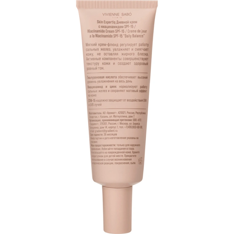 Крем для лица `VIVIENNE SABO` SKIN EXPERTIQ дневной с ниацинамидом SPF-15 (для нормальной и комбинированной кожи) 50 мл