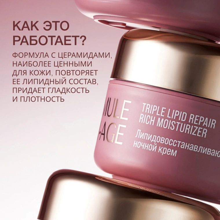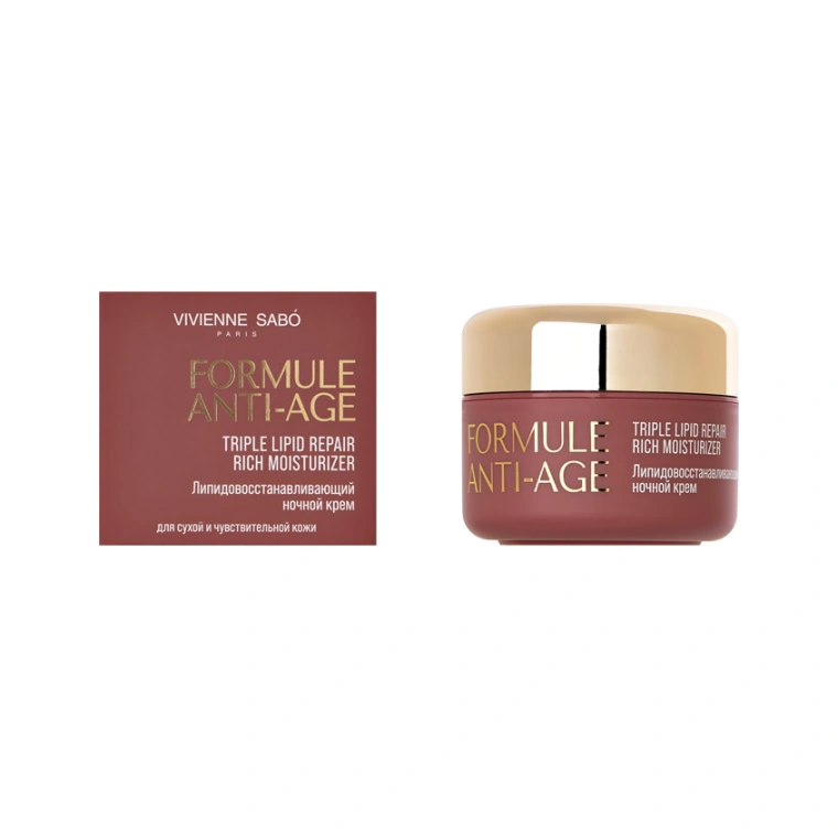 Липидовосстанавливающий ночной крем TRIPLE LIPID REPAIR RICH MOISTURIZER от VIVIENNE SABÓ интенсивно питает и укрепляет кожу во время сна. Формула на основе трёх ключевых липидов повторяет естественный состав кожного барьера, восстанавливая его целостность и устраняя сухость, стянутость и микроповреждения.