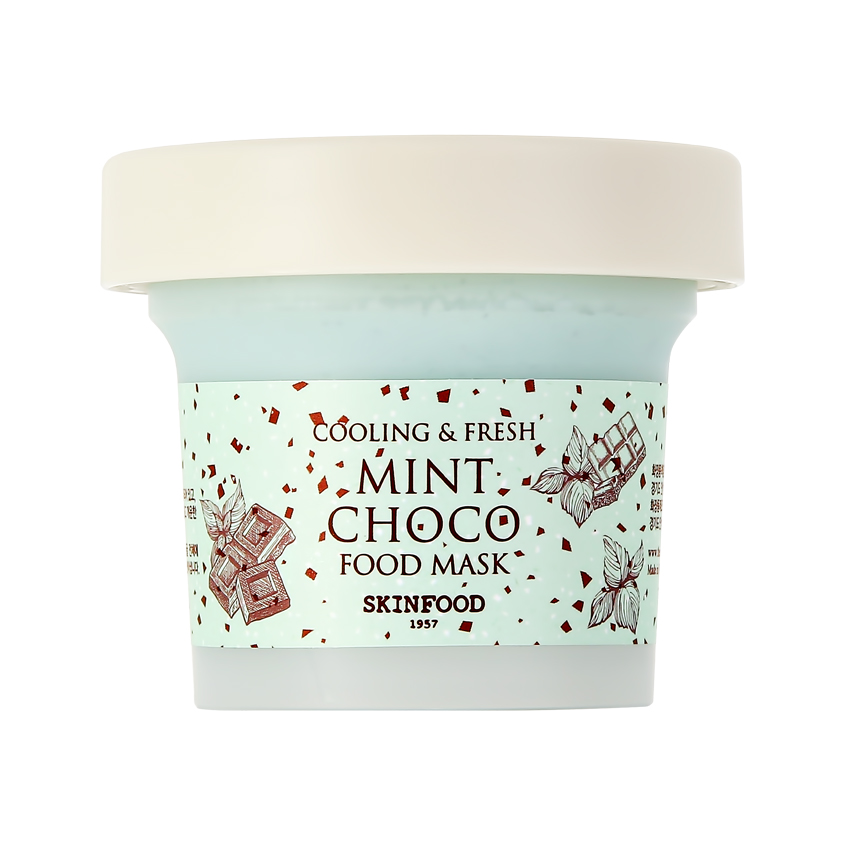 Благодаря своему уникальному составу освежающая маска для лица SKINFOOD Food Mask с мятой и шоколадом по праву может считаться одним из самых полезных десертов для вашей кожи! Основной компонент корейской маски — экстракт мяты, который глубоко питает и прекрасно успокаивает, помогает выровнять тон кожи, улучшить цвет лица и придать ему здоровый и ухоженный вид. Входящий в состав экстракт какао надолго сохраняет влагу внутри эпидермиса, избавляя от сухости и шелушения. Результат — свежая, очищенная от загрязнений кожа. Аромат шоколада превратит процедуру ухода в приятный ритуал.