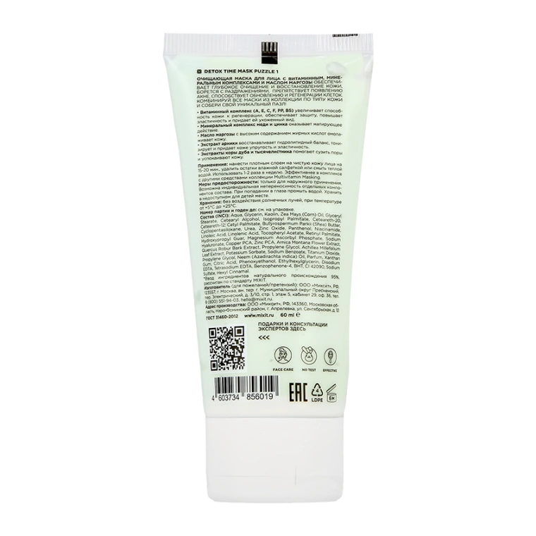 тёплой водой. Используй 1 - 2 раза в неделю. Для максимального эффекта комбинируй с другими средствами коллекции Mask Puzzle.