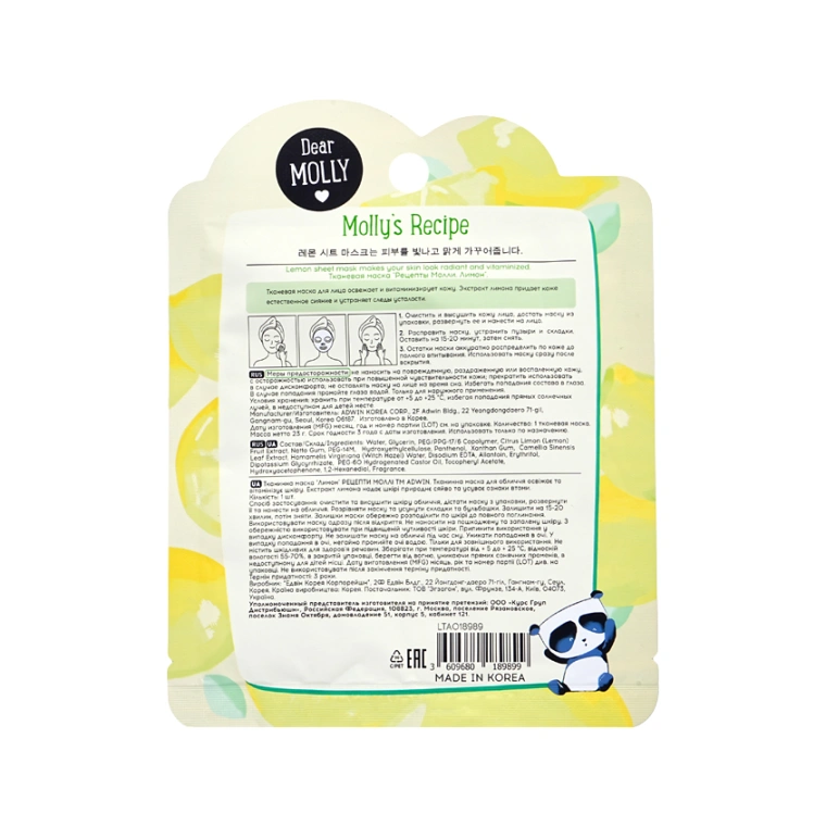Тканевая маска для лица освежает и витаминизирует кожу. Экстракт лимона придает коже естественное сияние и устраняет следы усталости.