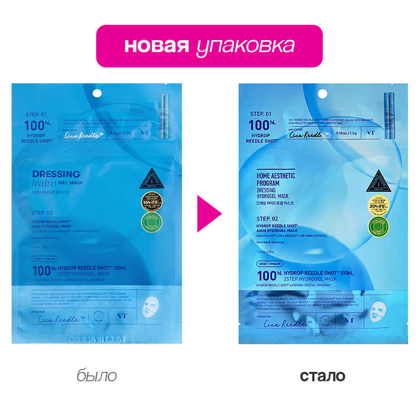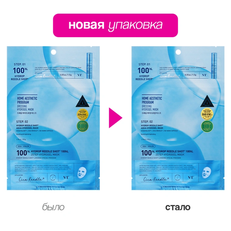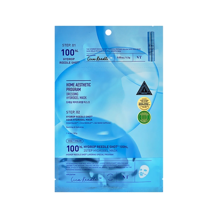 Двухступенчатая гидрогелевая маска для лица VT HYDROP REEDLE SHOT 100 HL с гиалуроновой кислотой сочетает мощное увлажнение с глубоким восстановлением кожи. Формула на основе гиалуроновой кислоты и микроигл эффективно доставляет активные компоненты в глубокие слои эпидермиса, обеспечивая видимый результат уже после первого применения. Экстракт центеллы азиатской и пантенол успокаивают раздраженную кожу, устраняя покраснения и шелушения. Ниацинамид укрепляет защитный барьер, делая кожу более устойчивой к внешним воздействиям. Маска VT HYDROP REEDLE SHOT 100 HL заметно разглаживает морщины и выравнивает кожу.