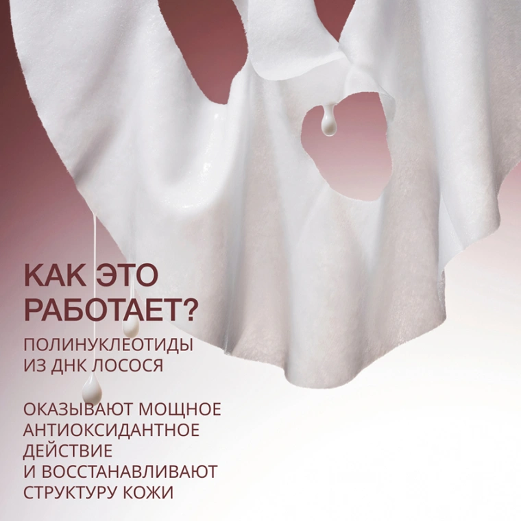 PDRN (полинуклеотиды, полученные из ДНК лосося) обладают мощным восстанавливающим и антиоксидантным действием, стимулируют активность фибробластов и способствуют синтезу компонентов дермы. Комплекс пептидов повышает плотность и эластичность кожи, укрепляя её структуру и разглаживая поверхность.