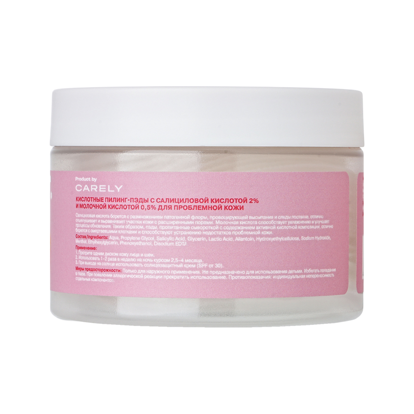 Салициловая и молочная кислоты в составе пэдов способствуют сужению расширенных пор, нормализуют выделение себума, выравнивают микрорельеф, осветляют пигментные пятна и выравнивают тон кожи. Пэды ускоряют процесс регенерации и восстановления эпидермиса, уменьшают воспаления и проявления акне.