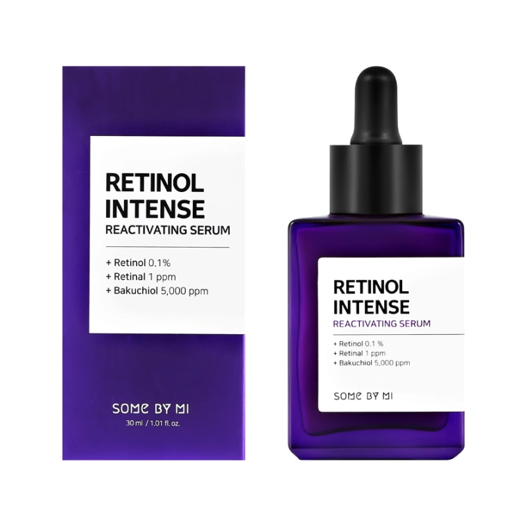 Насыщенная антивозрастная сыворотка для лица SOME BY MI Retinol Intense с ретинолом и бакучиолом (anti-age) оказывает комплексное действие в борьбе с первыми признаками возрастных изменений, воздействуя эффективно, при этом очень деликатно, без раздражения и сухости. Ключевые компоненты формулы: комплекс из ретинола (0,1%) и ретинальдегида (1 ppm). Они оказывают мощнейшее антиэйдж-действие, стимулируют синтез коллагена и эластина в клетках, повышают упругость кожи, а также устраняют признаки усталости, придавая взгляду свежесть и сияние. Бакучиол — растительный аналог ретинола (витамин А), он усиливает действие ретиноидов и одновременно стабилизирует их. Также он стимулирует выработку структурных белков коллагена, уплотняет и разглаживает кожу, замедляя процессы увядания кожи. Пантенол (витамин B5) и центелла азиатская смягчают и питают кожу, снимая раздражение и покраснение. Корейская сыворотка с ретинолом SOME BY MI быстро впитывается, не оставляя липкости.