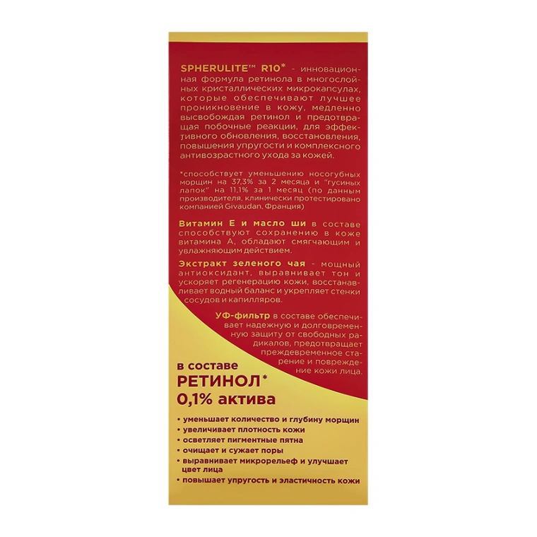 SPHERULITE® R10 – инновационная формула ретинола в многослойных кристаллических микрокапсулах, которые обеспечивают лучшее проникновение в кожу, медленно высвобождая ретинол и предотвращая побочные реакции, для эффективного обновления, восстановления, повышения упругости и комплексного антивозрастного ухода за кожей.