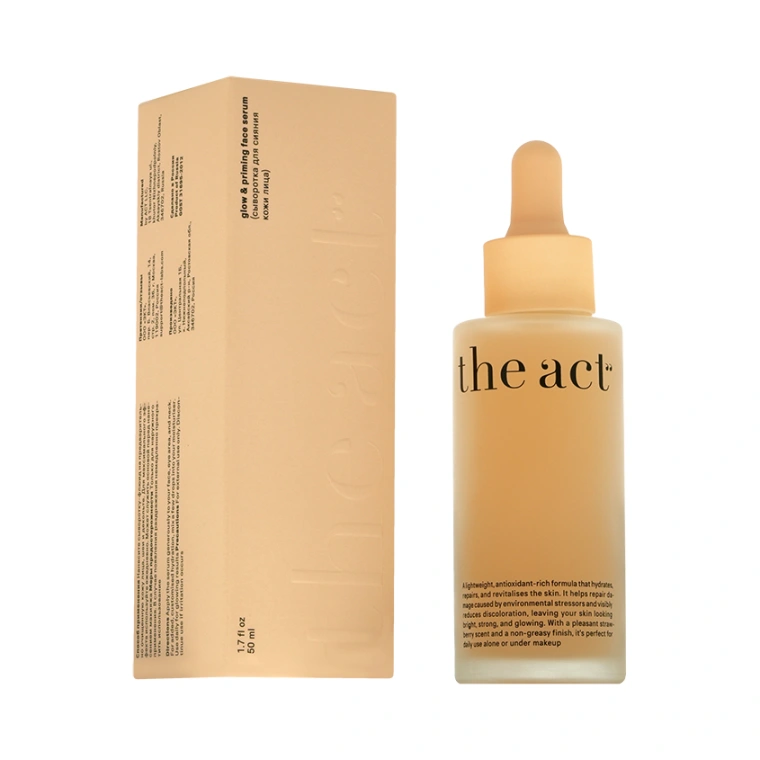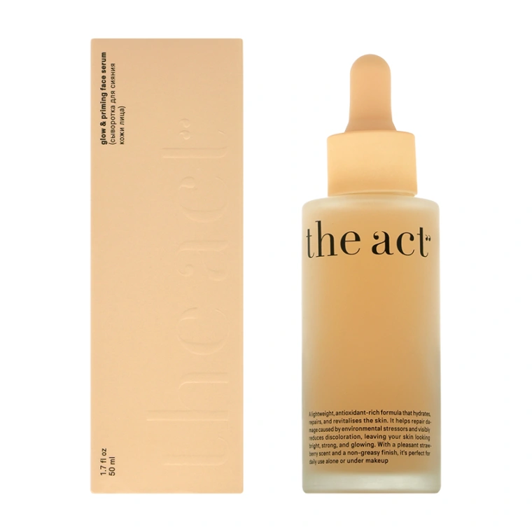 По сиянию у новой сыворотки для лица The Act – оценка «отлично». Но и другие бьюти-задачи ей тоже по-плечу: она интенсивно увлажняет и обновляет кожу, повышает защитные функции, выравнивает тон и текстуру.