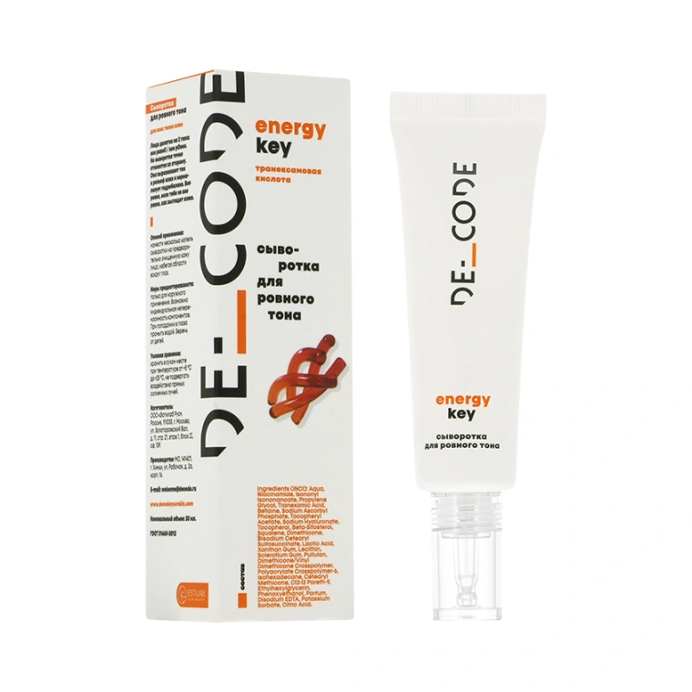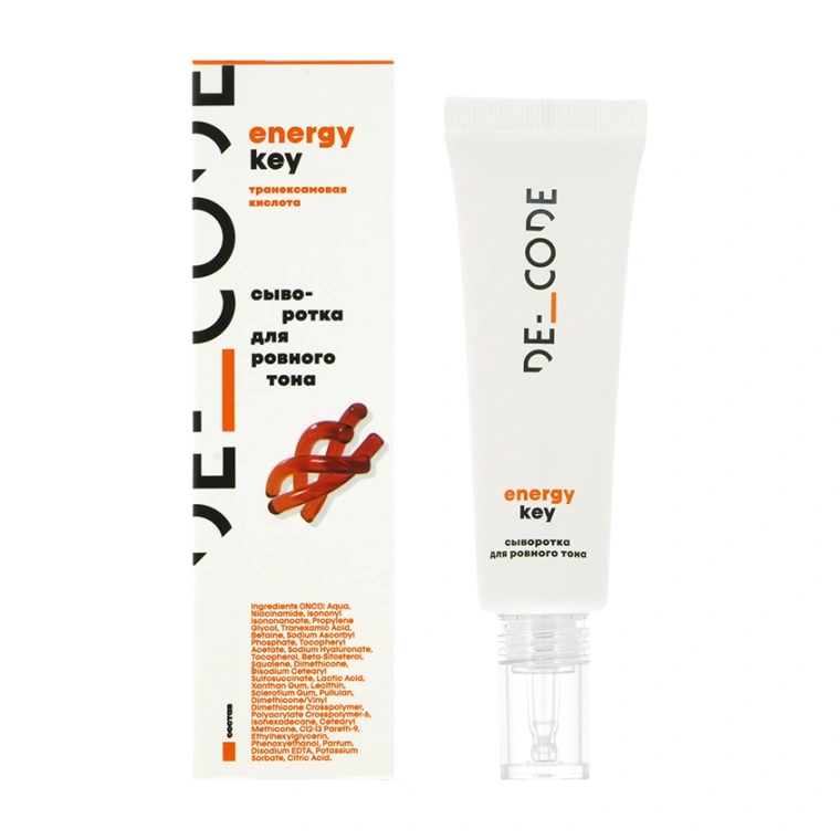 Транексамовая кислота подавляет синтез меланина, осветляет и предотвращает пигментные пятна.