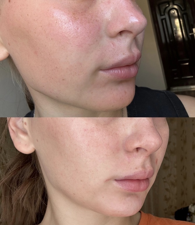 Первое фото было сделано 18 августа (лицо красное из-за солнечного ожога), второе - 16 сентября. Пользуюсь сывороткой и бустером одновременно уже на протяжении 3-х недель. Результата никакого нет.