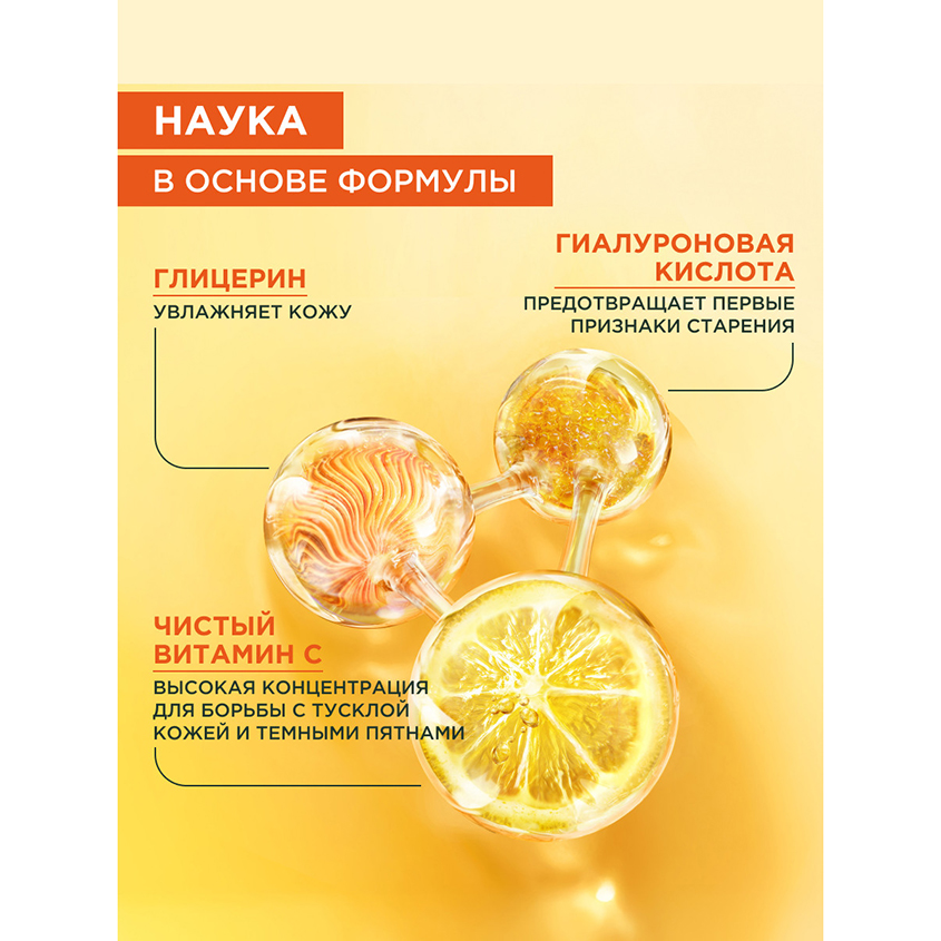 ухода. Сыворотка на водной основе содержит высокую концентрацию Чистого Витамина С натурального происхождения, не содержит силиконов, поэтому может ощущаться липкость в течение первых нескольких секунд после нанесения. Используйте увлажняющее средство после сыворотки. В случае попадания в глаза немедленно и тщательно промойте водой.