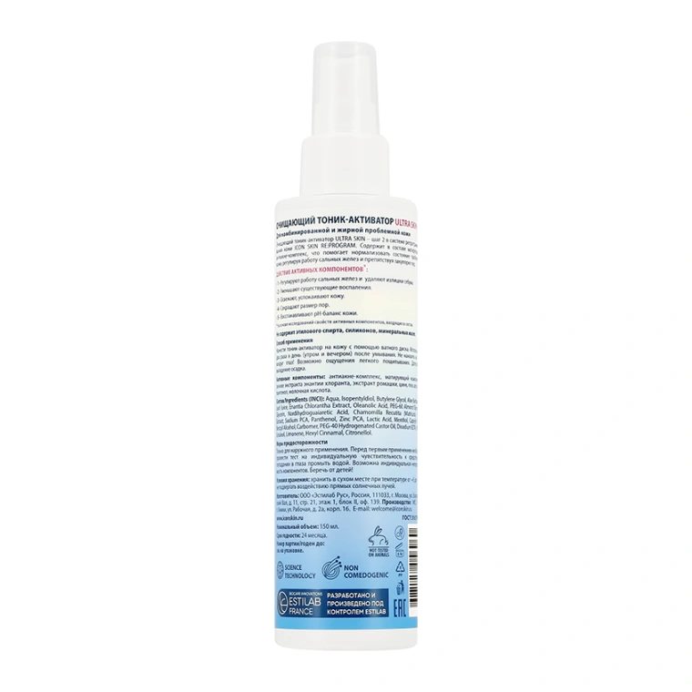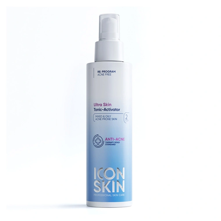 Очищающий тоник-активатор ULTRA SKIN помогает нормализовать состояние комбинированной и жирной проблемной кожи, регулируя работу сальных желез и препятствуя закупорке пор благодаря содержанию матирующего и антиакне-комплекса. Некомедогенная формула с содержанием НУФ (Япония) сокращает очаги воспалений, подавляет болезнетворную флору, чтобы сделать кожу более чистой, гладкой и сократить видимость черных точек. Удобный дозатор позволяет рационально расходовать средство. pH 4.5 необходим для эффективного воздействия на щелочную среду проблемной жирной кожи. ДЕЙСТВИЕ: 1) Регулирует работу сальных желез и удаляет излишки себума. 2) Уменьшает существующие воспаления. 3) Освежает, успокаивает кожу. 4) Сокращает размер пор. 5) Восстанавливает pH-баланс кожи. РЕЗУЛЬТАТ: нормализован кислотно-щелочной баланс, кожа подготовлена к следующему этапу ухода. НЕ СОДЕРЖИТ: этилового спирта, силиконов, минеральных масел.