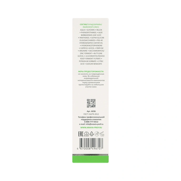 Aqua, Glycerin, Inulin, Phenoxyethanol, Aloe Barbadensis Leaf Juice, Panthenol, Alpha-Glucan Oligosaccharide, PEG-40 Hydrogenated Castor Oil, Hydroxyacetophenone, Caprylyl Glycol, Parfum, Arginine, Saccharomyces/Zinc Ferment, Butylene Glycol, Leuconostoc/Radish Root, Ferment Filtrate, Potassium Sorbate, Citric Acid, Sodium Benzoate.