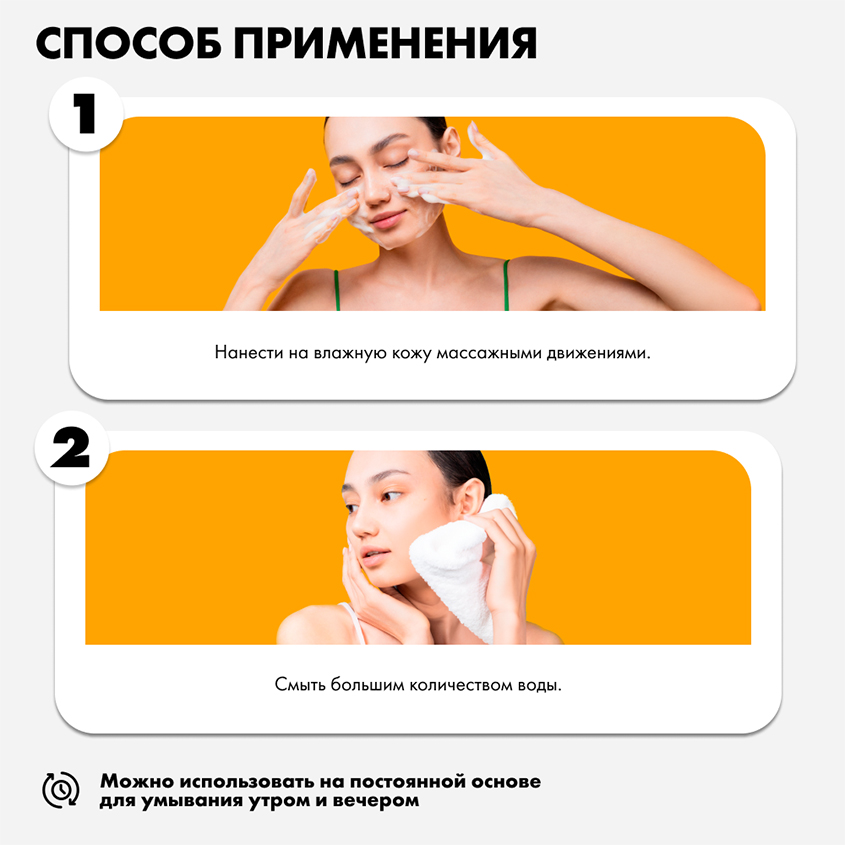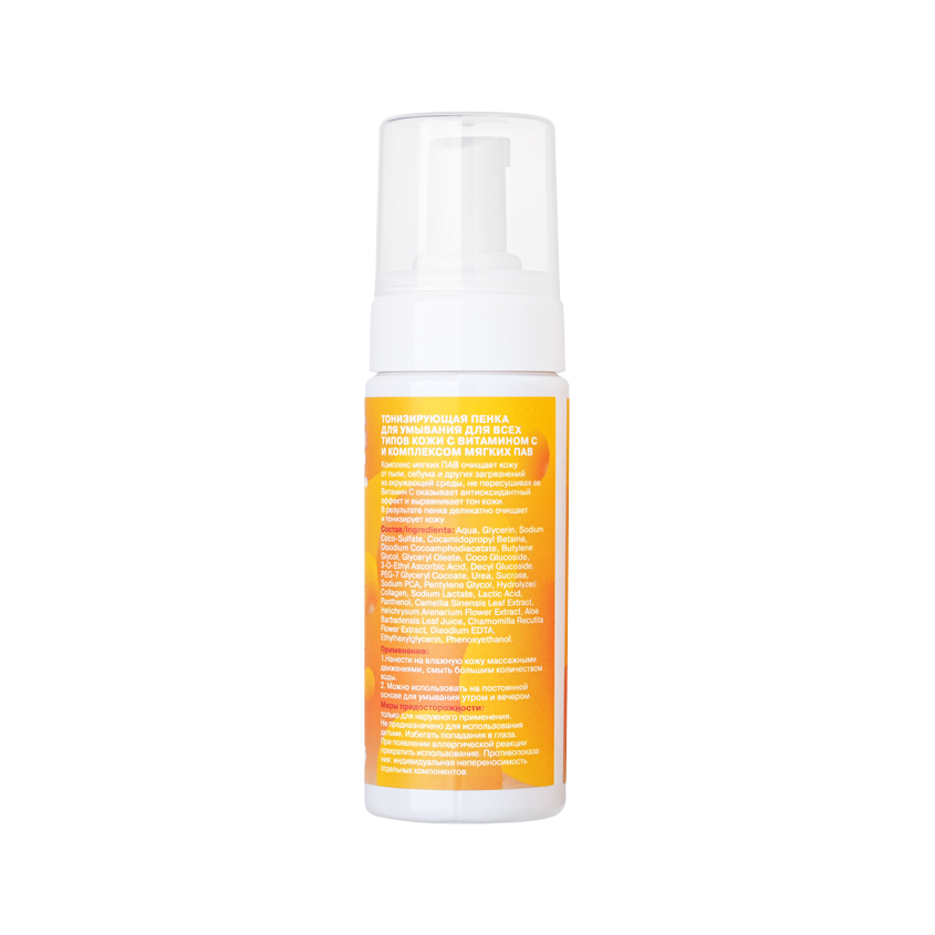Комплекс мягких ПАВ очищает кожу от пыли, себума и других загрязнений из окружающей среды, не пересушивая ее. Витамин С оказывает антиоксидантный эффект и выравнивает тон кожи. В результате пенка деликатно очищает и тонизирует кожу.